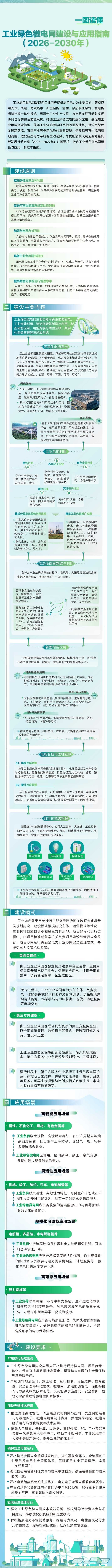 为贯彻落实国务院办公厅《制造业绿色低碳发展行动方案(2025—2027年)》等要求,扩大工业领域绿电应用,促进重点行业领域节能降碳,工业和信息化部、国家发展改革委、国务院国资委、市场监管总局、国家能源局等五部门联合印发《工业绿色微电网建设与应用指南(2026—2030年)》(工信厅联节〔2025〕77号,以下简称《指南》)。工业和信息化部节能与综合利用司负责同志就《指南》出台的背景和意义、主要内容等回答了记者的提问。